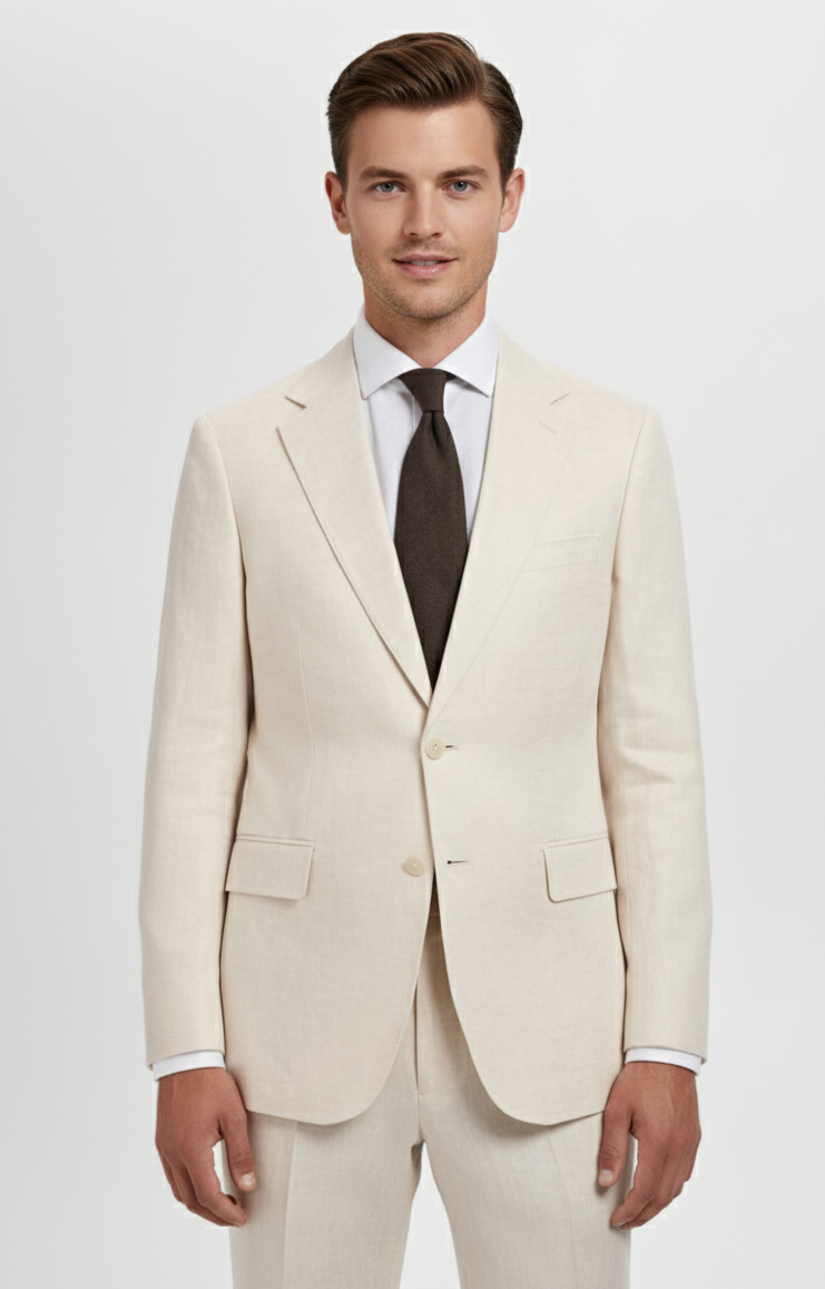 Create a sophisticated, lightweight blazer ideal for warmer climates or casual formal occasions, prioritizing natural breathability and a sharp, modern silhouette.