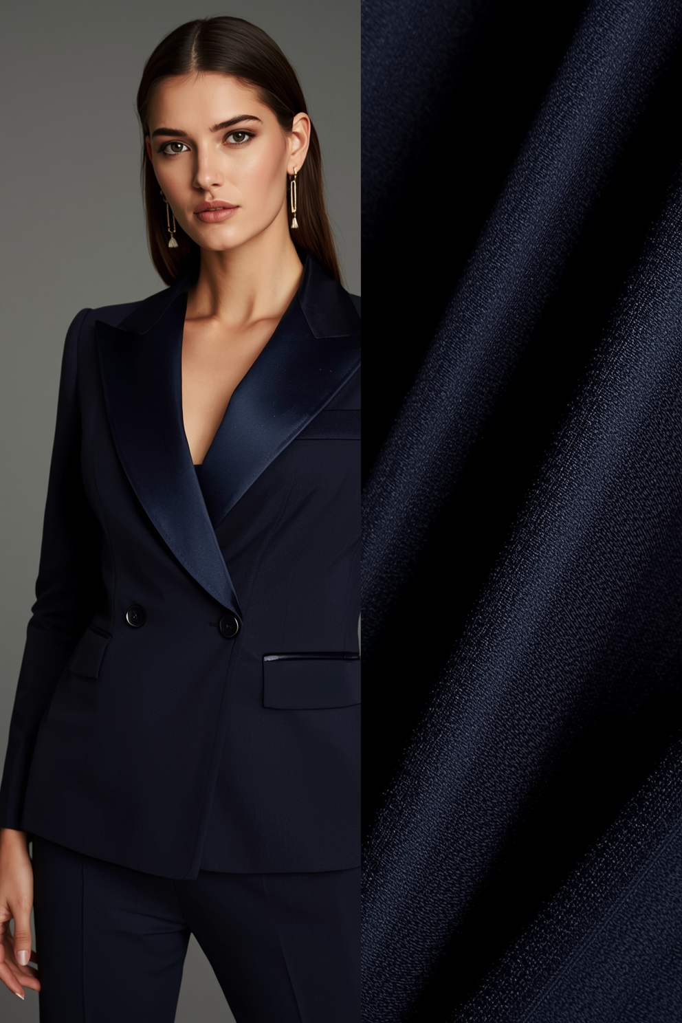 Sleek, sophisticated evening wear crafted from velvet, wool-satin blends, and crepe-back satin in classic colors like black, navy, and champagne.